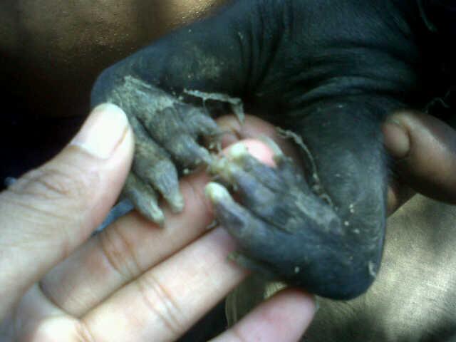 JUAN DE HERRERA-SAN JUAN.- El asombro se ha apoderado de la comunidad de los Montones, en el municipio de Juan de Herrera, donde ha nacido un Cerdo con las patas delanteras con manos semejantes a la de un humano.